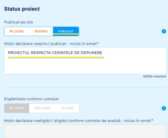 Administrațiile beneficiază de un panou de control puternic care permite filtrarea, analiza și validarea proiectelor. Platforma oferă posibilități extinse de personalizare, gestiune utilizatori, backup automat, control al accesului și integrări cu sistemele instituționale.