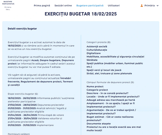 Platforma noastră de bugetare participativă este o soluție software personalizabilă, creată special pentru administrațiile publice locale care doresc să modernizeze, digitalizeze și eficientizeze procesul de implicare a cetățenilor în alocarea fondurilor publice. Prin această platformă, primăriile beneficiază de: transparență și încredere publică sporită, printr-un proces deschis, verificabil și accesibil oricui; reducerea semnificativă a volumului de muncă intern prin automatizarea etapelor de colectare, evaluare și validare a propunerilor de proiecte; centralizarea și filtrarea ușoară a propunerilor, cu posibilitatea de a analiza în mod clar prioritățile comunității; interfață administrativă intuitivă, ce permite gestionarea utilizatorilor, configurarea etapelor și validarea proiectelor cu un minim de efort tehnic; imagine modernă și deschidere către cetățeni, printr-o platformă web profesională, compatibilă cu orice dispozitiv; conformitate cu cerințele de securitate și protecția datelor (inclusiv GDPR), cu backup automat și control detaliat al accesului. Este o soluție complet configurabilă – poate fi adaptată identității vizuale a instituției, integrată cu sistemele informatice existente și extinsă în funcție de nevoile fiecărei administrații.