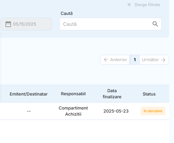 • Afișare clară a documentelor intrate și ieșite