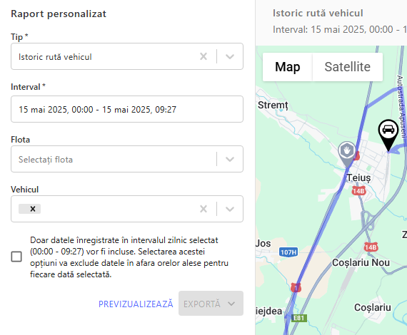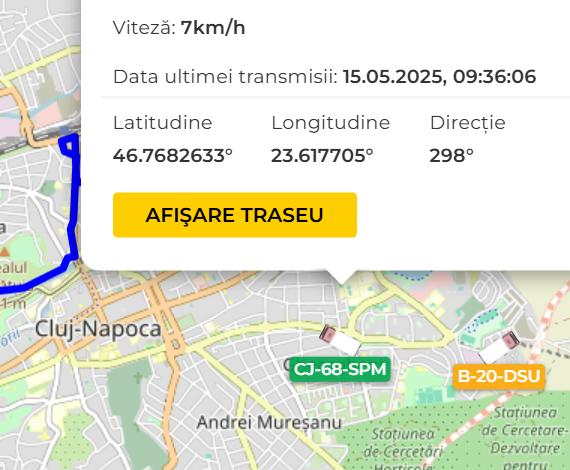 Localizare precisa a vehiculelor, analiza rutelor si control complet asupra flotei, cu actualizare continua.