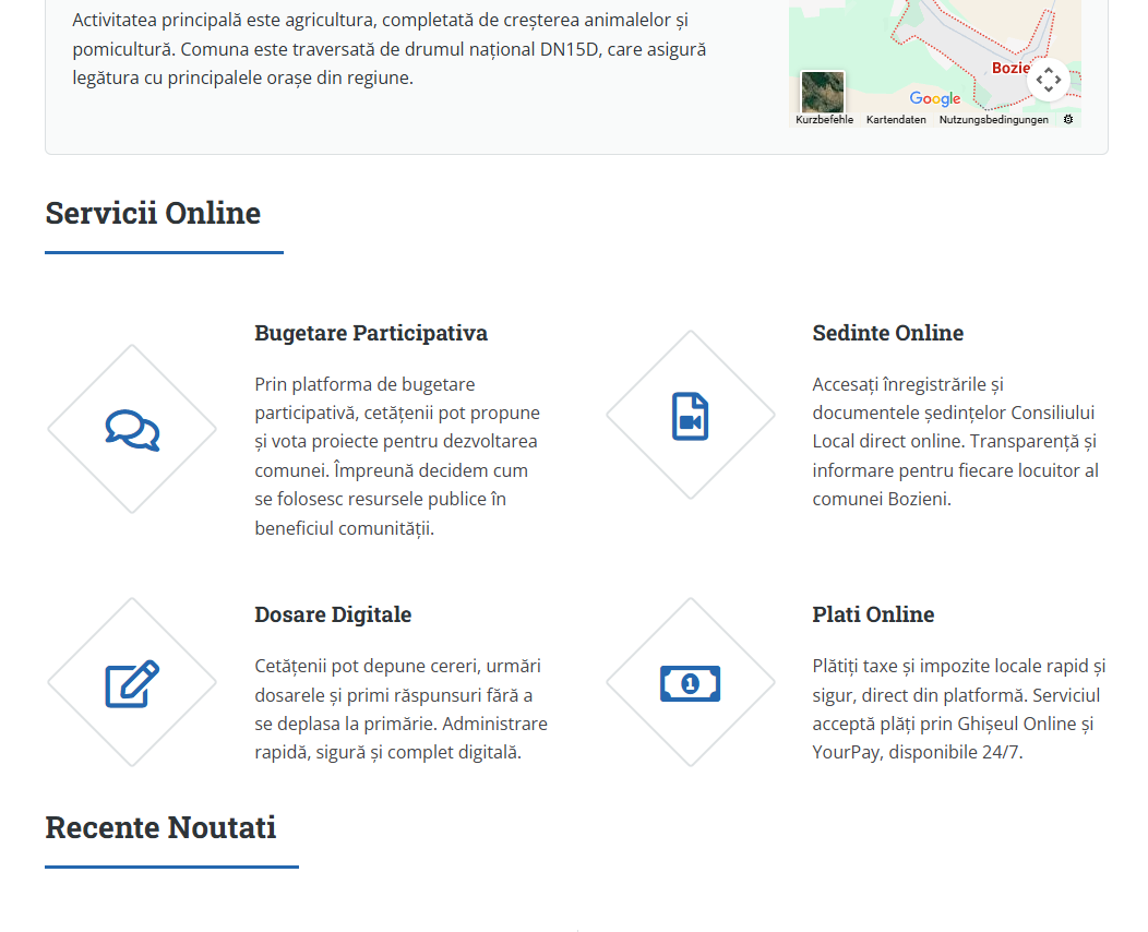 Primăria Online este o soluție digitală completă și modulară care transformă interacțiunea dintre cetățeni și administrația locală. Printr-o singură platformă, cetățenii pot accesa servicii precum: programări la ghișeu, transmitere cereri online, bugetare participativă, sesizări și altele – toate gestionate într-un spațiu securizat și ușor de utilizat.